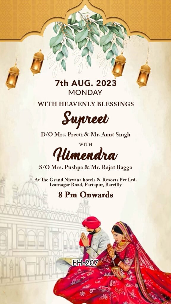 Sikh WeddingCode EH-211rs 1000/- theluxuryinvite@gmail.com / December 31, 2024 Code : EH-211rs 1000/- Book Order on Whatsapp
